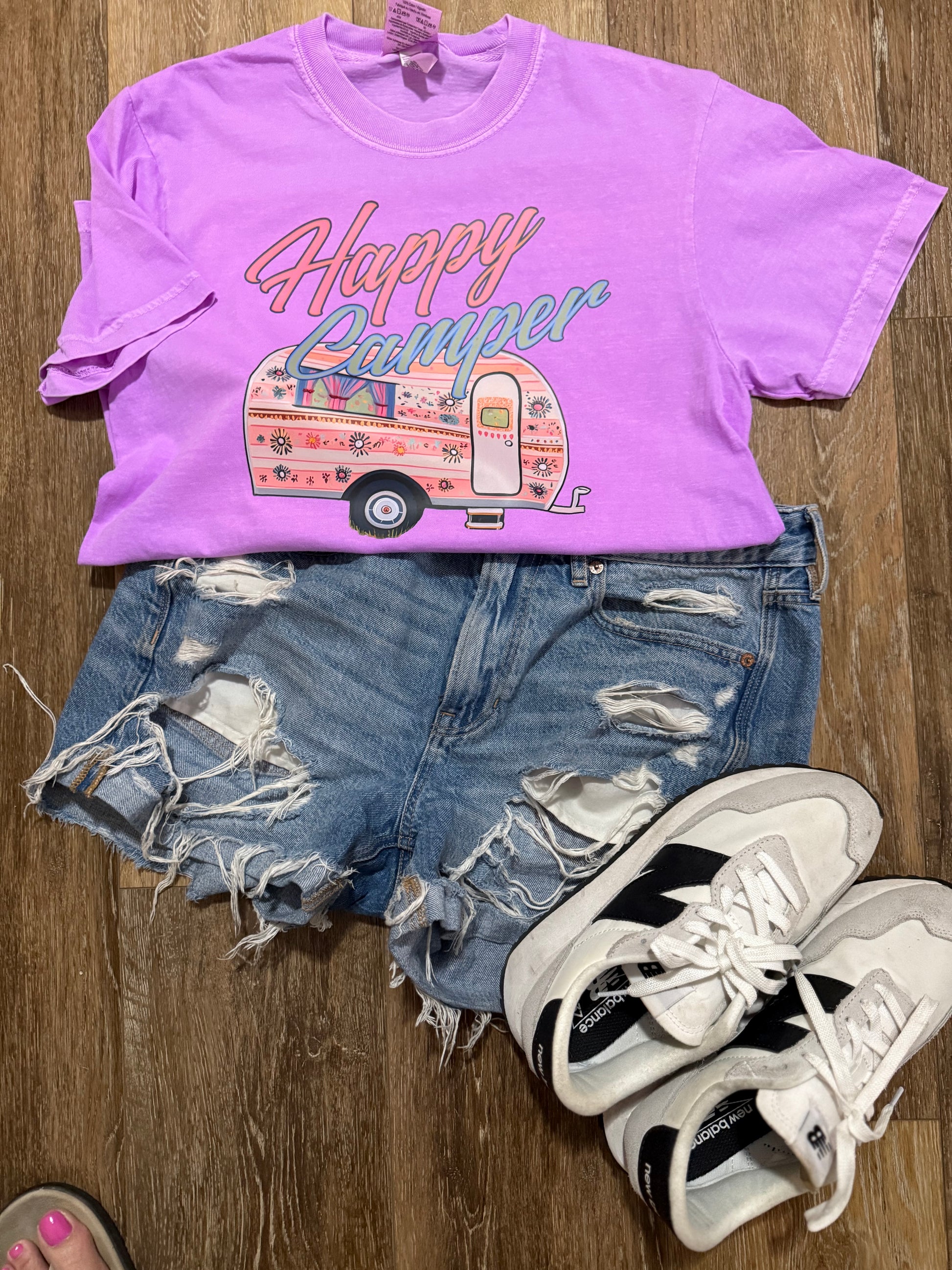 Introducing the Happy Camper Tee! Made with high-quality materials, this tee offers maximum comfort and durability. Its breathable fabric keeps you cool and dry, making it perfect for outdoor adventures. With its stylish design and perfect fit, it's a must-have for any camping enthusiast. Upgrade your camping wardrobe now!