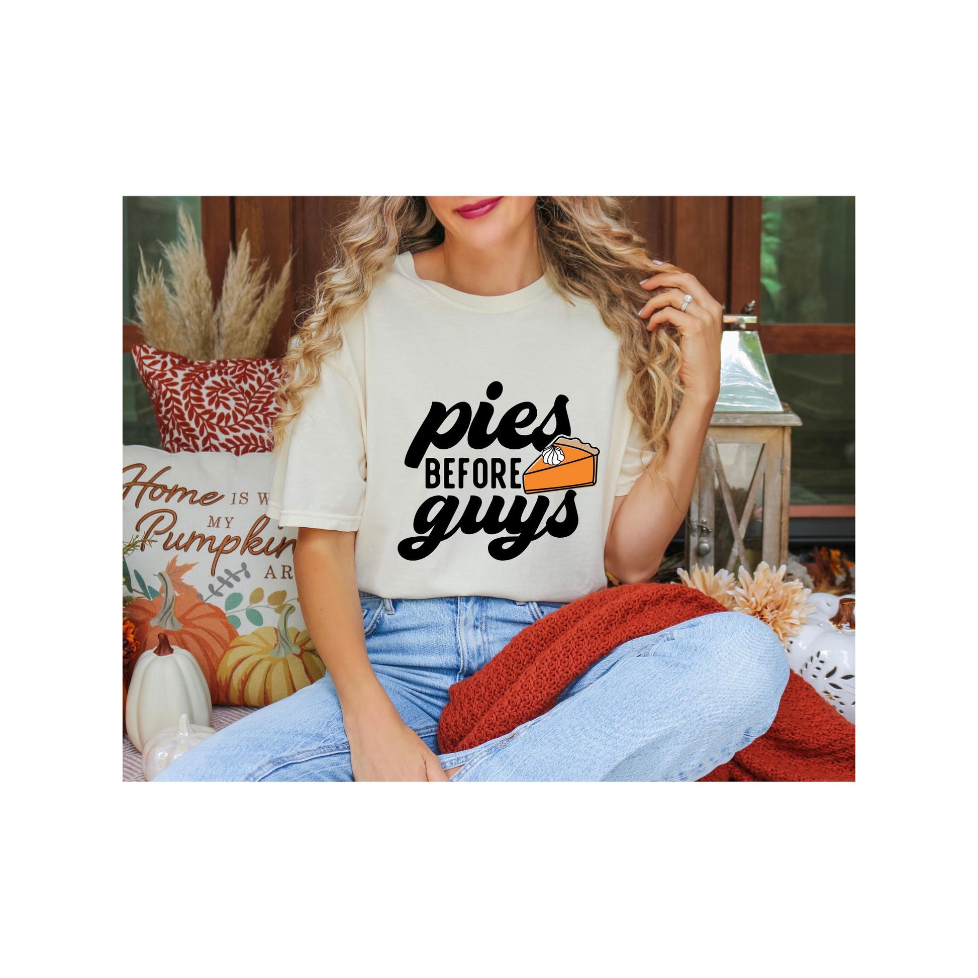 Pies Before Guys Fall Shirt | Funny Thanksgiving Graphic Tee | Cute Autumn Pie T-Shirt | Pumpkin Pie Season Tee | Fall Humor Shirt for Women